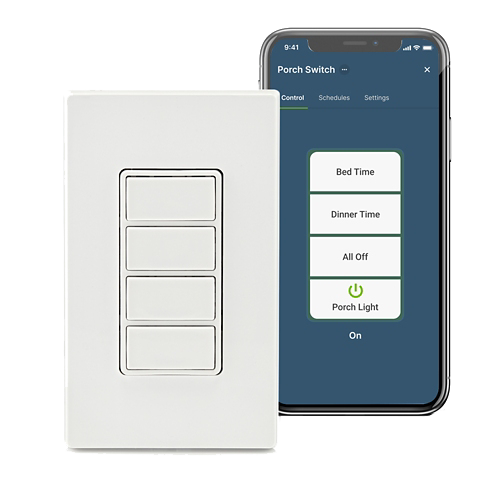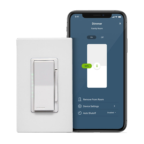 Desde la app My Leviton, puedes encender, apagar, atenuar y programar escenas que se activan con un solo toque